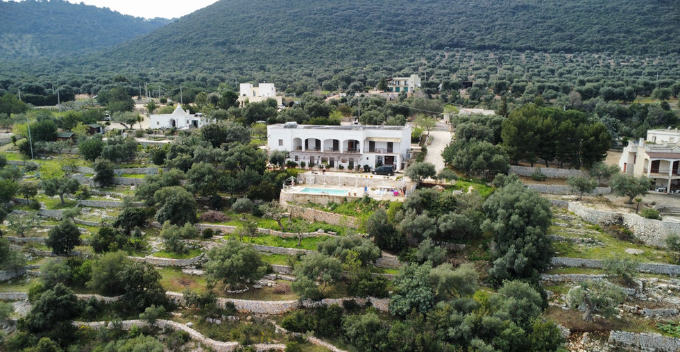 On the hills of Monopoli, towards Fasano, halfway up the hill, a splendid newly built farmhouse of 500 m2 is offered for sale with an unrepeatable 180° sea view over the plain of olive trees and the Caribbean sea of Monopoli and Fasano.